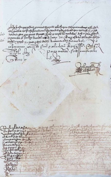 El contenido alude a propiedades significativas —como molinos de aceite, tierras anexas y bienes rurales— reflejando la profunda vinculación entre nobleza, poder económico y explotación agrícola en la Andalucía del siglo XVI. Su emisión por autoridad real demuestra el control directo de la monarquía sobre la estructura nobiliaria y la administración de justicia.